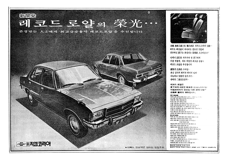 GM코리아의 레코드는 고급승용차로 당시 장관급 이상의 고위층이 애용하는 차로 자리잡았습니다만 시보레 1700의 부진으로 신진 시절에 비해 시장장악력은 현저히 떨어졌습니다. 시보레 1700에 비하면 뉴 코티나는 연료소모도 적고 내구성이 우수했기 때문에 선풍적인 인기를 끌었습니다. 유려한 곡선이 적용된 패스트백 스타일링은 당시 다른 차들보다 멋져 보였죠.